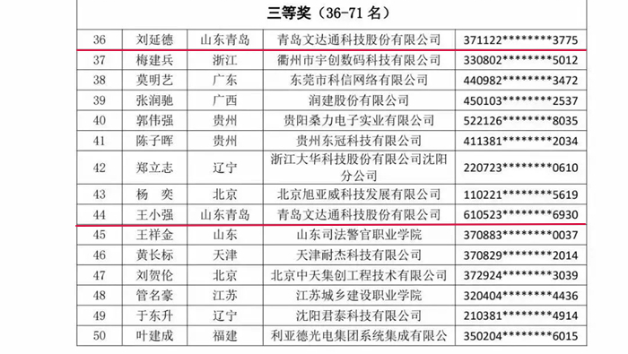 本次活動中,青島安防協會副理事長單位——青島文達通科技股份有限公司的劉延德、王小強分別在首屆全國安防行業職業技能競賽總決賽中榮獲三等獎,與此同時,青島文達通科技股份有限公司榮獲“競賽優勝單位”獎。